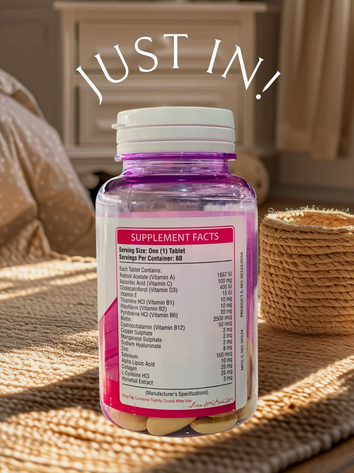 Hair health supplement, Nutrifactor Butex, skin vitality tablets, nail strengthener, Biotin supplement, Collagen tablets, Sodium Hyaluronate, vitamins for hair skin nails, beauty supplement in Pakistan, comprehensive nutritional supplement.