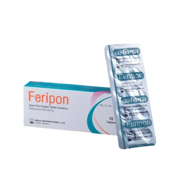Feripon 500mg Tablet is an iron-chelating medicine used to remove excess iron from the body. It contains Deferiprone, a powerful active ingredient that binds with excess iron in the bloodstream and tissues and helps eliminate it through urine. This medicine is commonly prescribed for patients who develop iron overload due to frequent blood transfusions, especially in conditions like thalassemia.