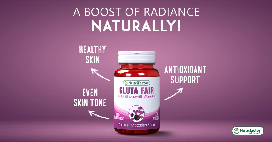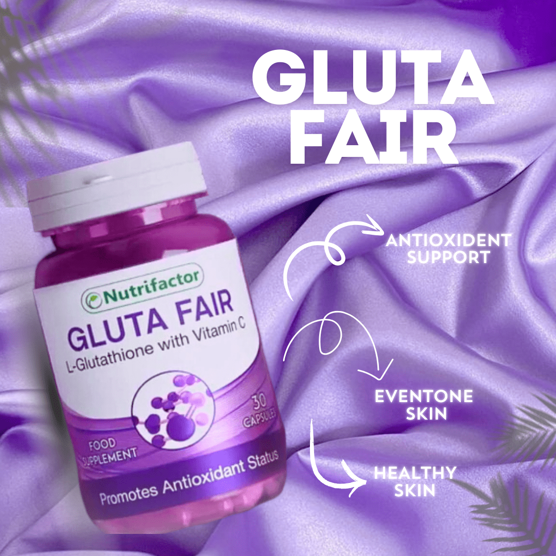 Nutrifactor’s Gluta Fair is a premium dietary supplement meticulously crafted to enhance skin health and bolster the immune system. Enriched with potent antioxidants, including L-Glutathione and Vitamin C, Gluta Fair aims to rejuvenate your skin’s radiance while providing comprehensive support for overall well-being.