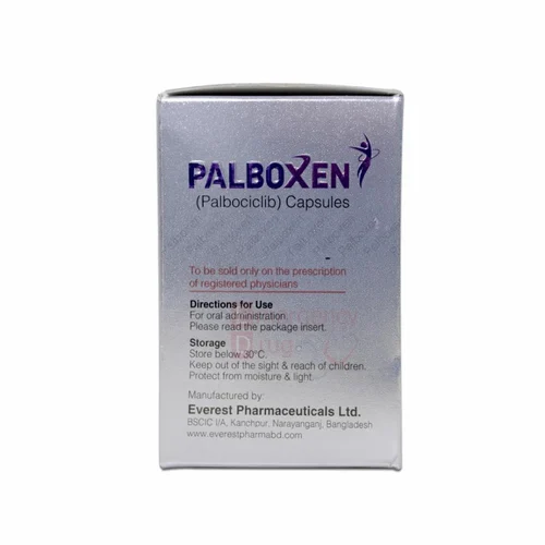 Palboxen 125 mg Capsule contains Palbociclib, a targeted, oral CDK4/6 inhibitor used to treat certain types of hormone receptor-positive (HR+), HER2-negative advanced or metastatic breast cancer. It works by blocking key proteins essential for cancer cell division, slowing tumor growth, and extending progression-free survival.